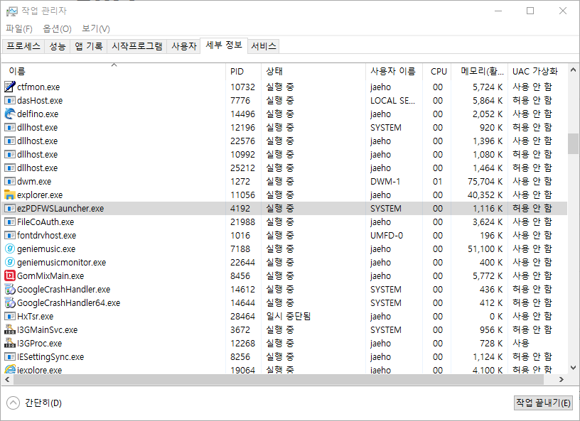해당 프로세스는 공공기관 및 개인과 기업이 사용하는 PDF 열람 환경을 제공하는 뷰어로 다음과 같이 프로세서도 많은 부담을 주지 않는 것으로 확인됩니다.