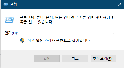 다음 사진은 윈도우키 + R을 눌렀을 경우 실행됨.